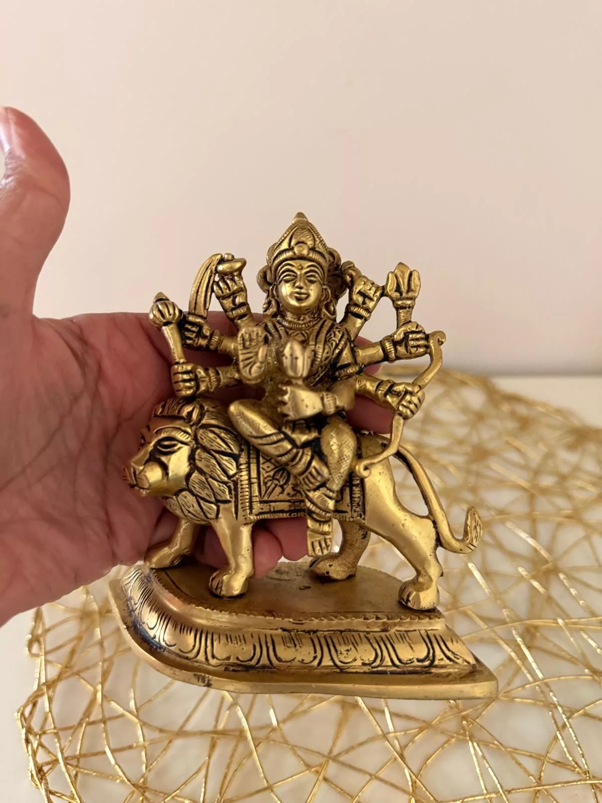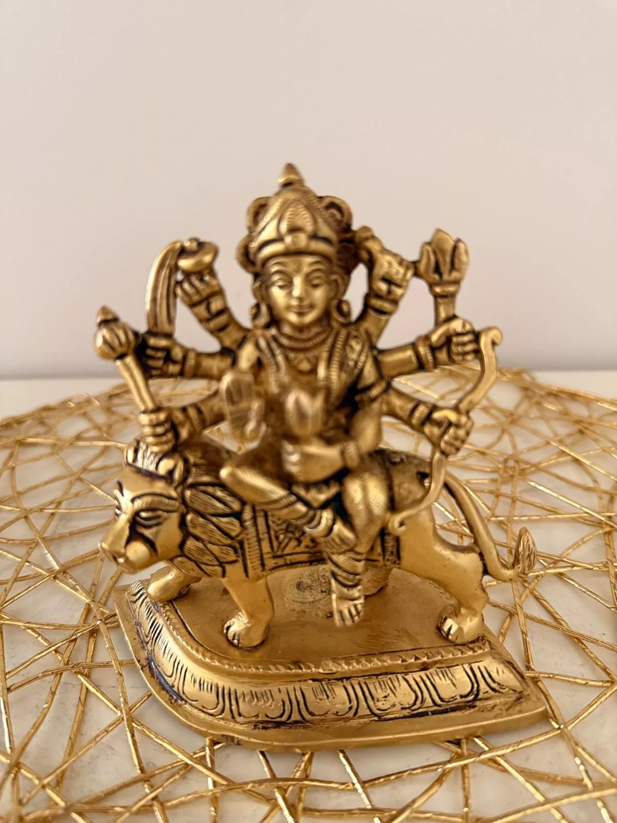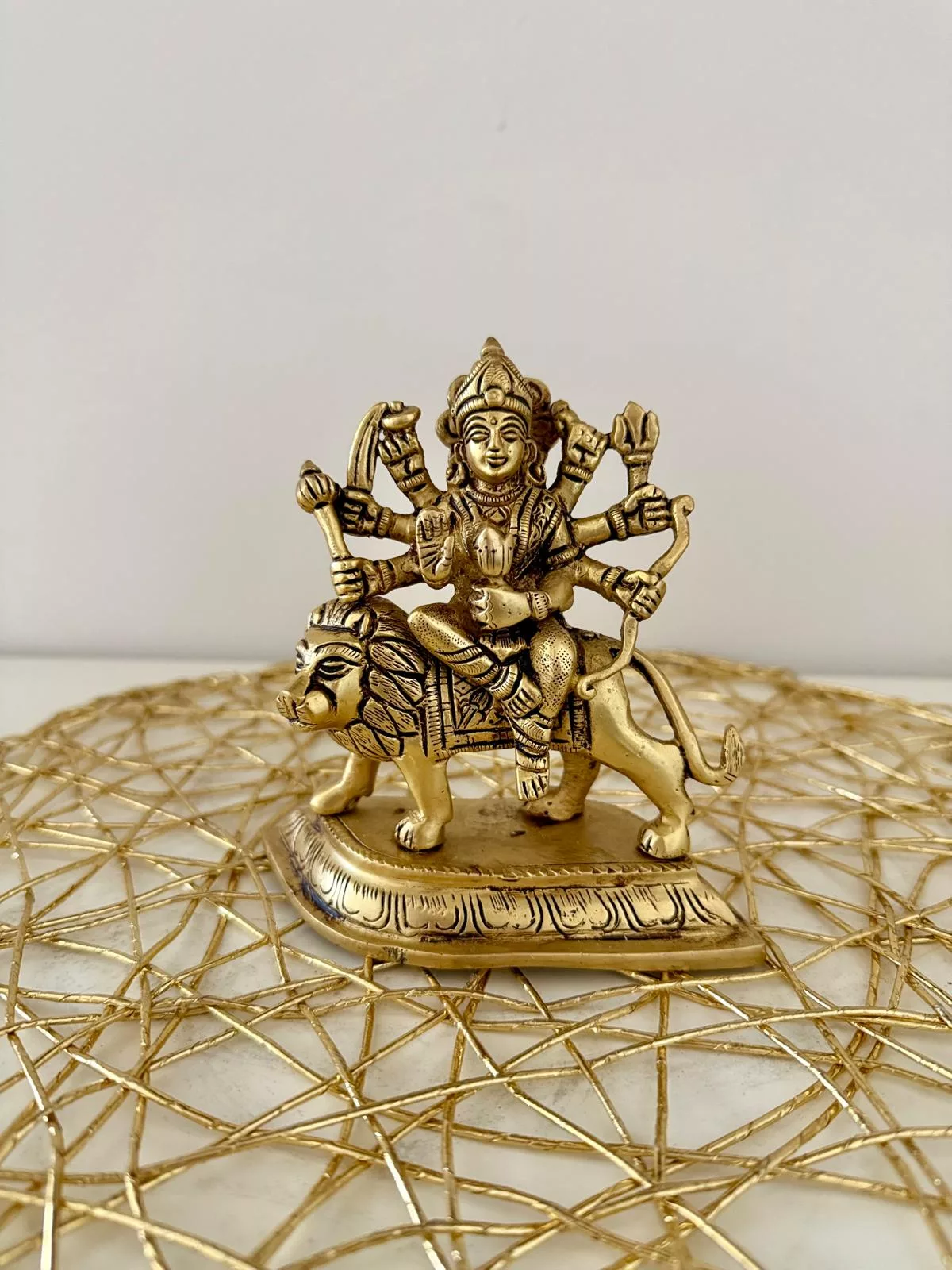 Tags: brass, brass sculpture, cultural decor, devotional gift, Divine Idol, Durga statue, Durgai Amman, Goddess Durga, handmade sculpture, Hindu Deity, home temple, idol, Indian art, lion, metal craft, Pooja Decor, religious figurine, sacred decor, Spiritual Decor, traditional art, vastu decor, warrior goddess
